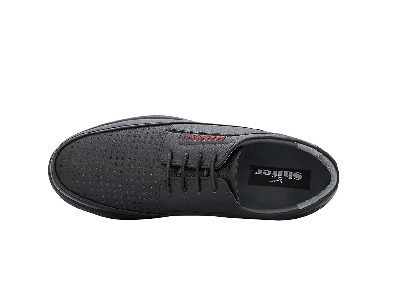 - شرح کالا: کفش روزمره مردانه شیفر تولید شده از رویه و آستر چرم طبیعی همراه با زیره پلی اورتان که انعطاف پذیری مناسبی داشته و فشار وارد بر کف پا را می کاهد . این محصول مناسب برای استفاده روزانه و پیاده روی است.